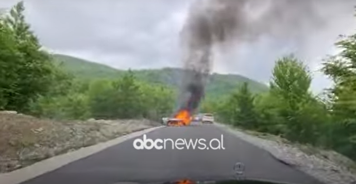 A car burned down this Sunday on Arbri Road. As can be seen from the images, the car is completely burnt. The event happened near the By-Pass of Murriz.