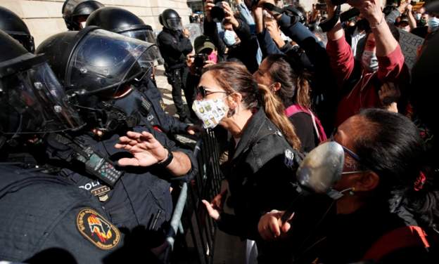 Rreth 1,000 punonjës protestuan ditën e sotme në Barcelonë, kundër mbylljes 15 – ditore të bareve dhe restoranteve.