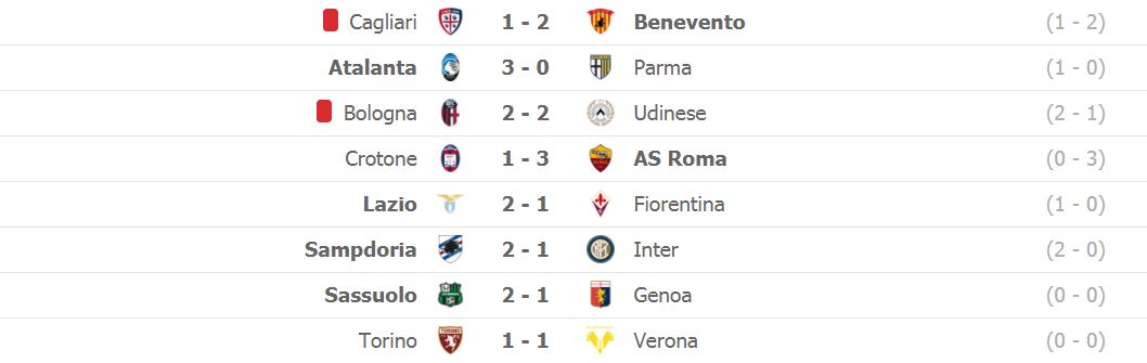 Në pjesën e dytë skuadra e Conte shënoi për 2-1, por nuk arriti të paktën të barazonte dhe të merrte një pikë në këtë betejë. Ndërkohë, në sfidat e tjera, Lazio arriti të mundë pastër me shifrat e 2-0 skuadrën e Fiorentinës.