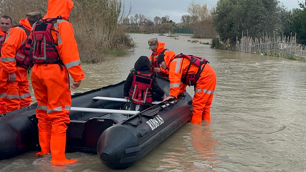 Një nënë me fëmijën dhe një të afërm të saj u transportuan me gomone në fshatin Ferras, për t’u mbërritur në shtëpinë e babait të saj, i cili ndodhet në gjendje të rëndë shëndetësore.