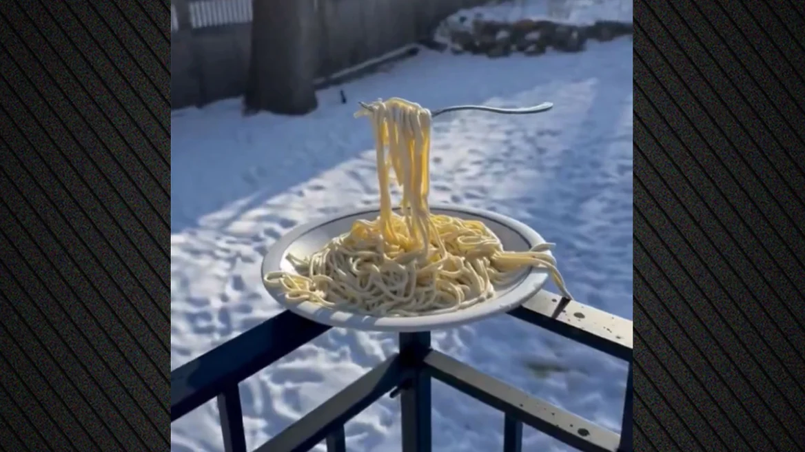 FROZEN SPAGHETTI 🍝: Pasta freezes in midair as Minneapolis reaches a low of -21 degrees and a wind chill of -45 degrees on Friday. pic.twitter.com/6m8srLxPZa