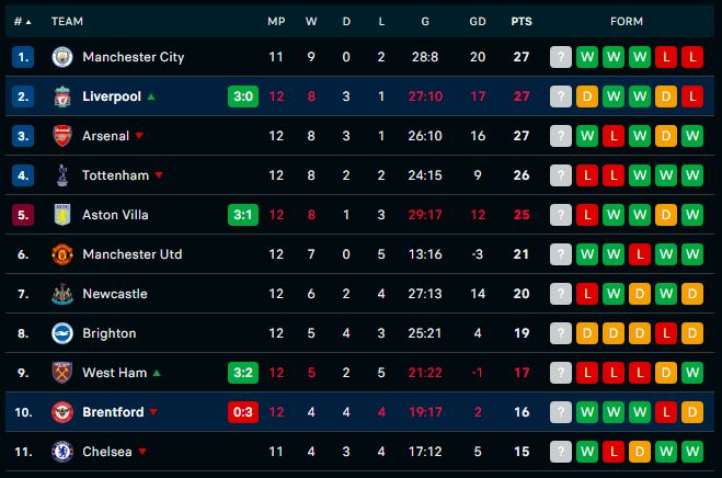 Kjo fitore e çon Liverpoolin në kuotën e 27 pikëve, po aq sa Manchester City i cili ndeshet sot me Chelsea dhe po aq sa Arsenali./h.ll/abcnews.al
