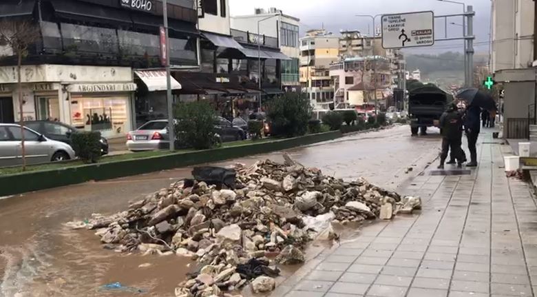 Përroi i Ficos në lagjen “Palorto” ka dalë nga shtrati, duke shkaktuar përmbytje në zonën e poshtme të qytetit.