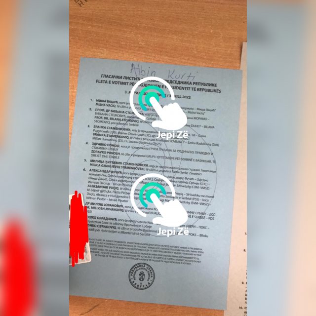 Një votues në Serbi, e ka bërë të pavlefshme fletën e votimit për President, ndërsa lart në të e ka shkruar emrin e kryeministrit të Kosovës, Albin Kurti.