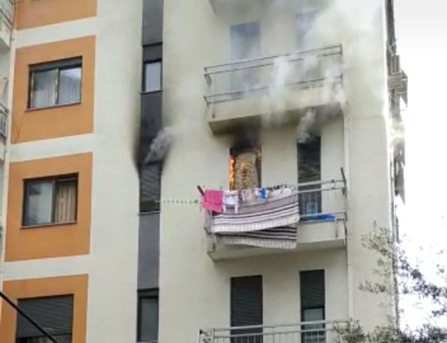 Një banesë është përfshirë nga flakët mëngjesin e kësaj të enjtje në Tiranë.